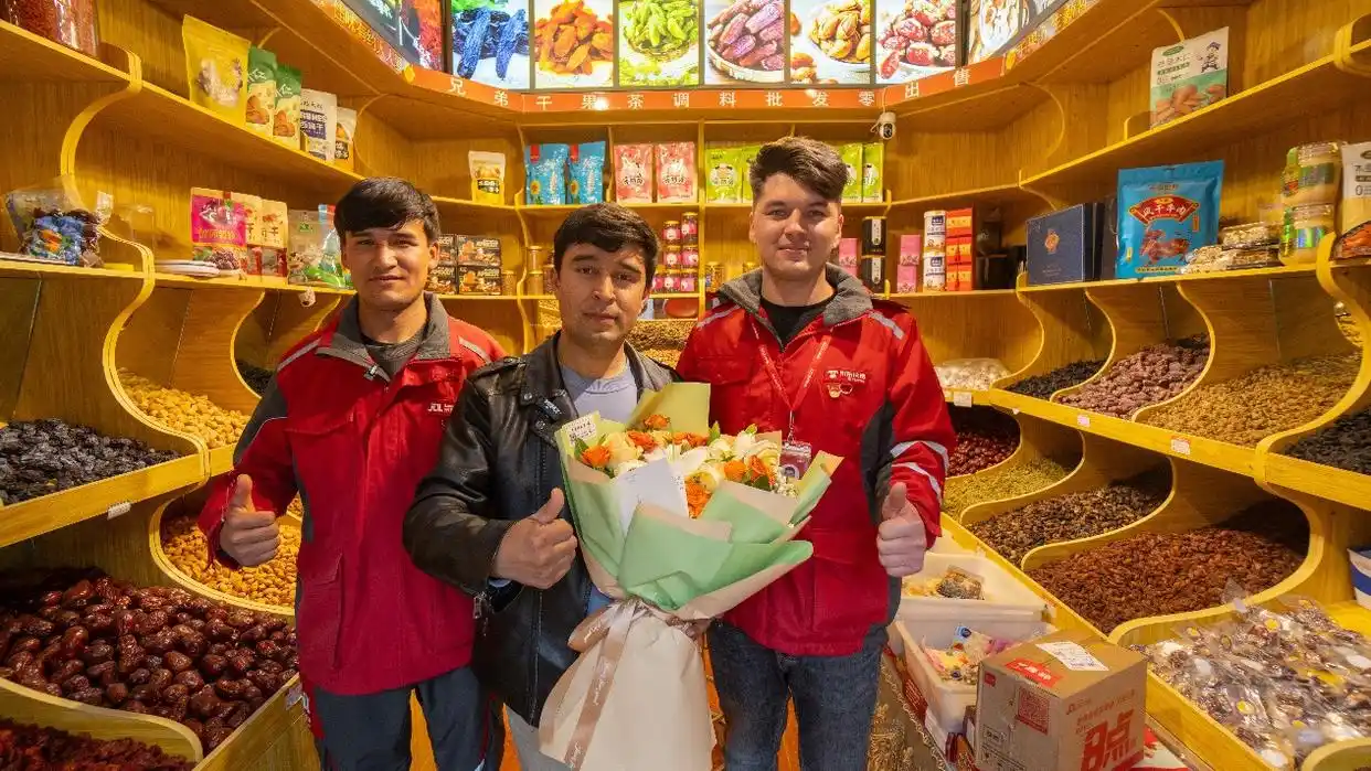 近日,喀什古城的干果店老板伊斯马伊力收到了京东快递员库尔班·努尔送来的快递——他早上在京东APP自营店铺下单了一套护肤品,这是他为爱人准备的礼物。更让他意外的是,随包裹而来的还有一束鲜花和一封京东物流的感谢信:“尊敬的伊斯马伊力先生:您好!今天是京东物流喀什仓试运营的第一天,您是我们的首单顾客,感谢您对我们的信任与支持,让我们有机会为喀什古城增添一份京彩速度。”