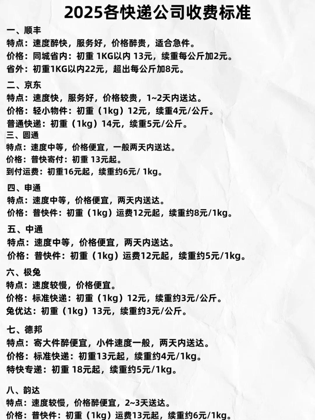 快递公司收费标准全解析:寄10公斤竟能省一半钱
